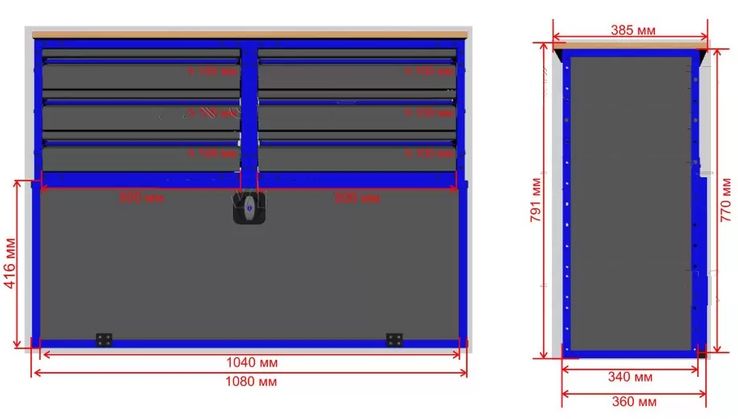 Верстак с двойной тумбой 9.8.791.1080.385 для сервисных автомобилей и передвижных мобильных мастерских.
